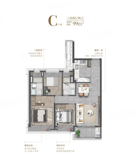 3室2厅2卫1厨, 99平米